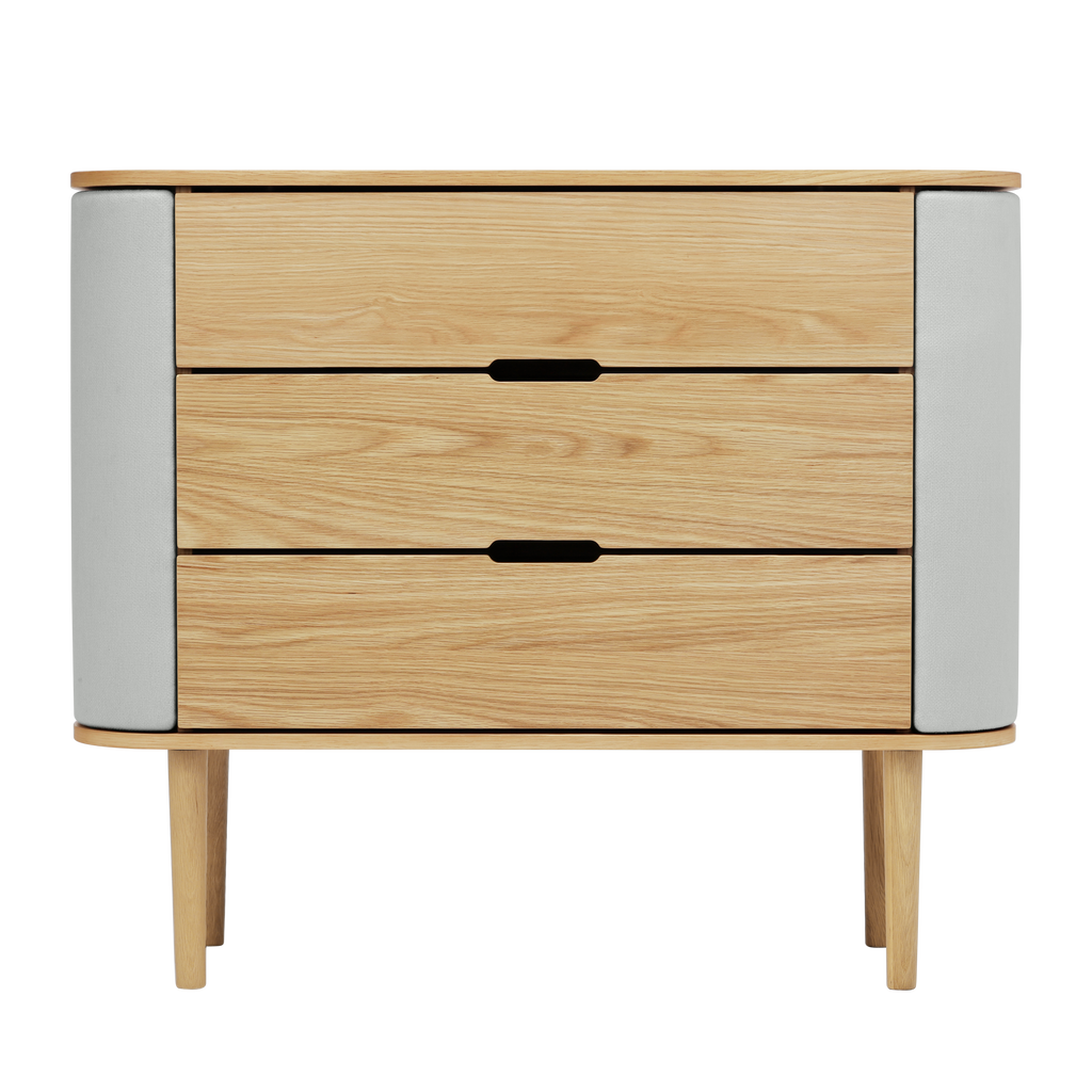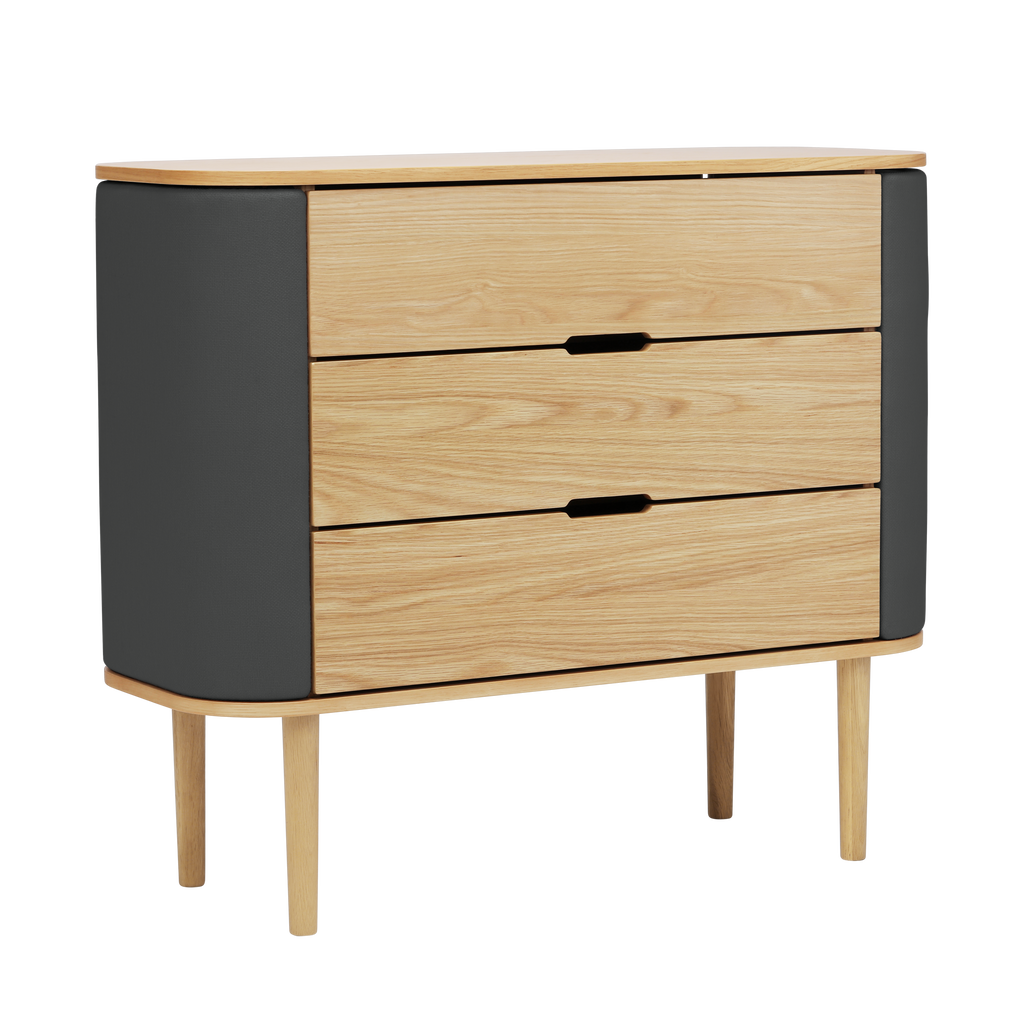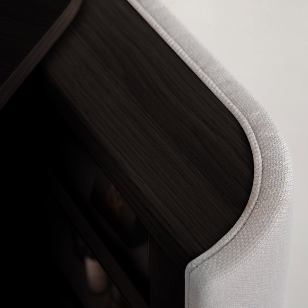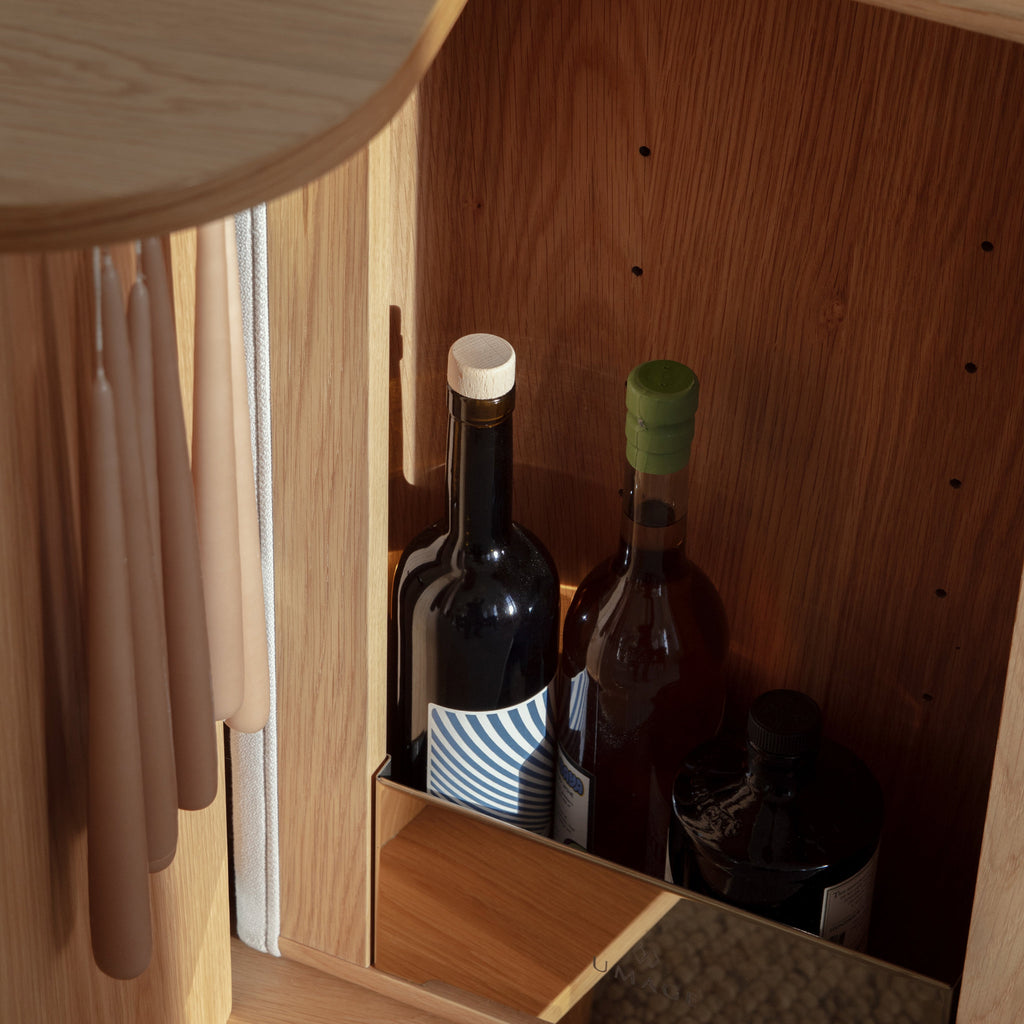 Treasures byrå kombinerar elegans och praktikalitet. Med sina böjda sidor och rymliga utrymmen ger den en känsla av mjukhet och förfining till inredningen. Sido-dörrarna öppnas...
