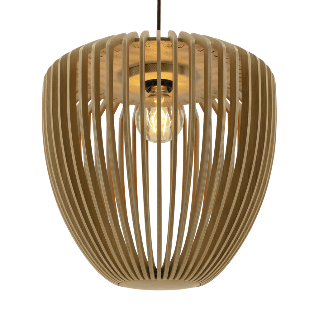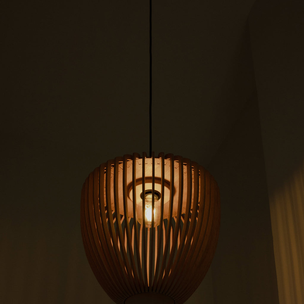 "Ensure a playful illumination of vertical lines on the walls in the surrounding space with the Clava Wood lampshade."