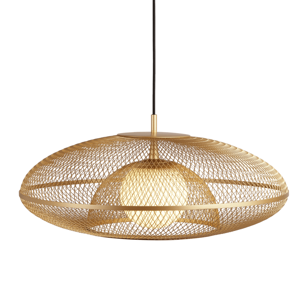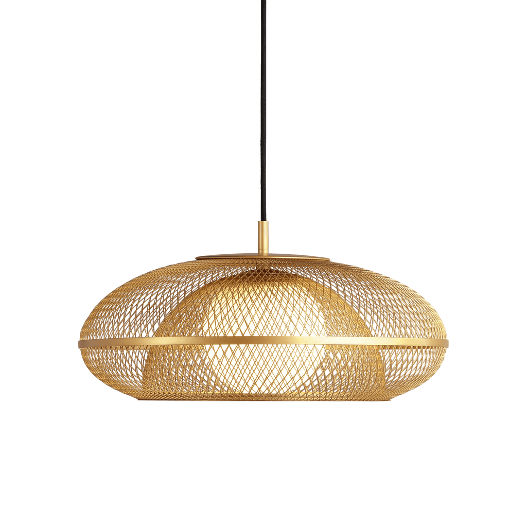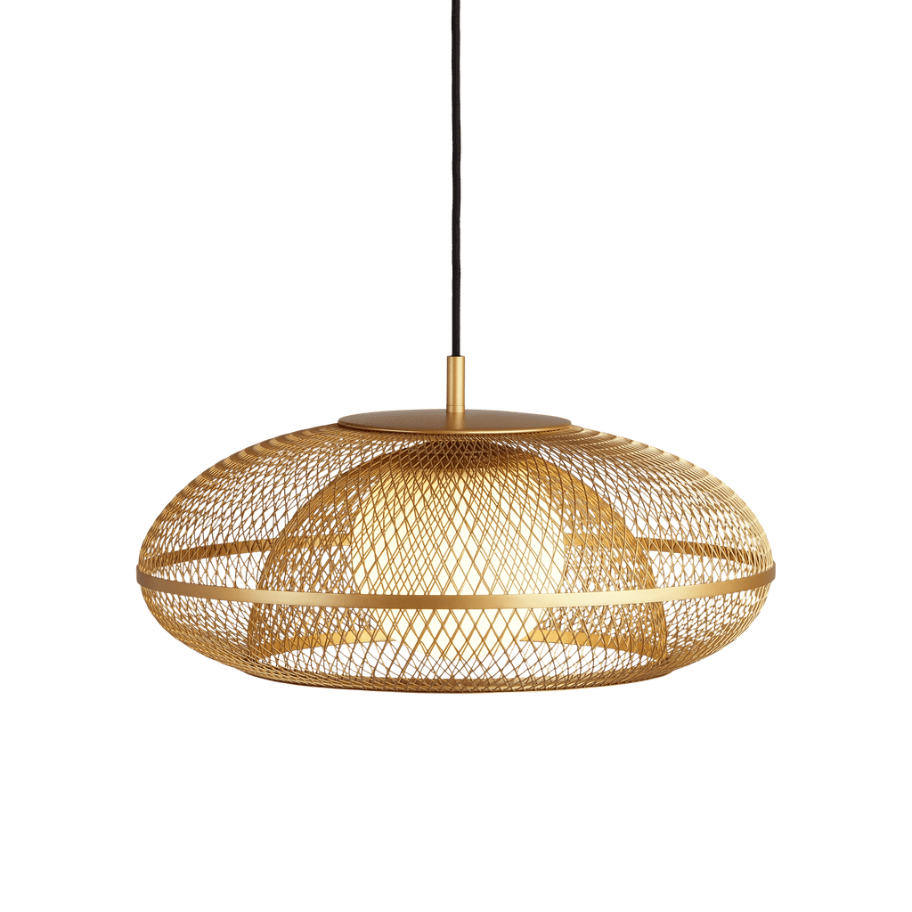 Der Faraday Lampenschirm verbindet ein filigranes Messinggeflecht mit einem milchig-weißen Opalglobus und bietet ein skulpturales Design mit weicher, blendfreier Beleuchtung. Das feine Gitter filtert das Licht und zeichnet subtile Muster an die umliegenden Wände, wodurch eine besondere Atmosphäre und visuelle Tiefe entsteht.