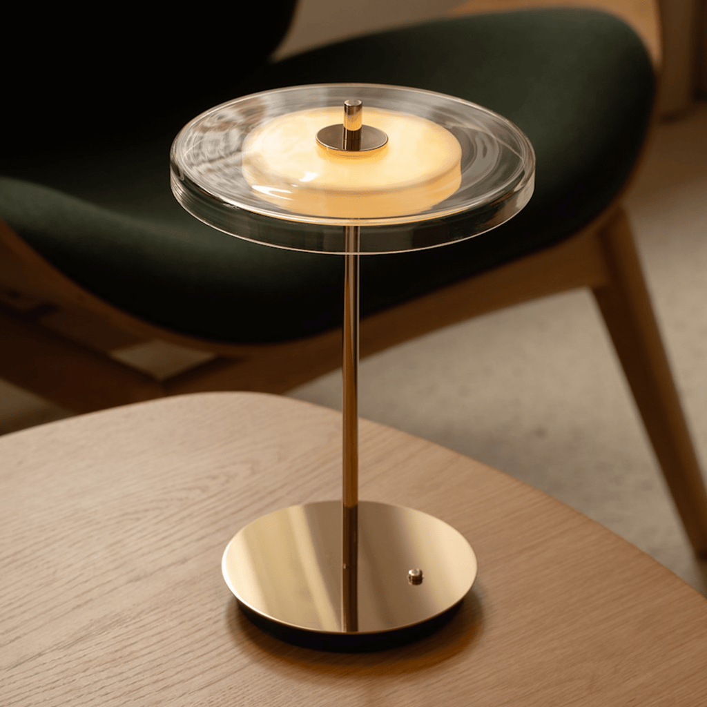 Blending cordless flexibility with contemporary elegance, the Asteria Move Glass adds a new lightness to the Asteria collection. Its transparent glass shade and sculptural diffuser create a soft, ambient glow across four brightness levels, while polished brass or steel accents complete the refined design. Portable and versatile, it brings atmosphere and sophistication to any space.