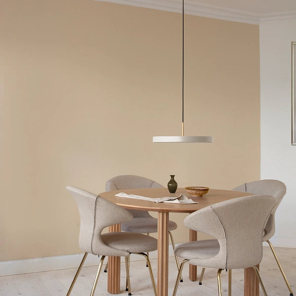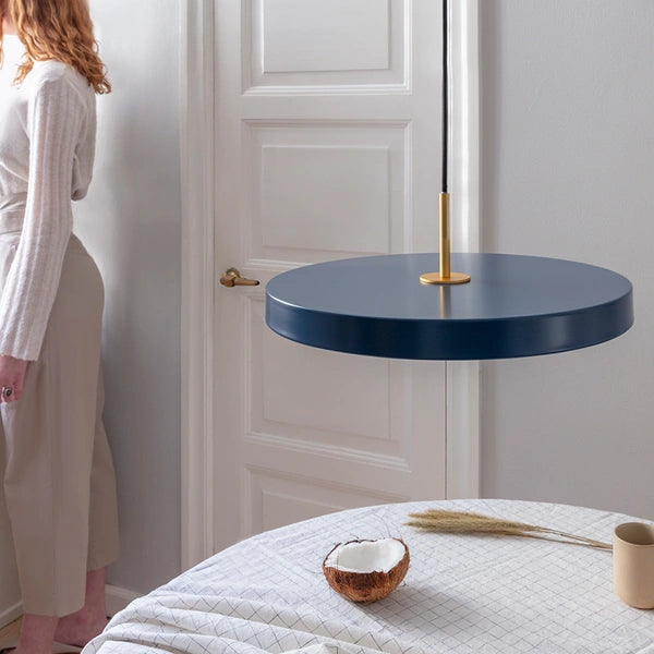 Designed with a sleek and minimal aesthetic, the Asteria pendant lamp seamlessly merges design, technology, and craftsmanship. Its built-in LED technology and soft white diffuser create a warm, inviting glow, while the dimmable panel allows for adjustable ambiance. Available in a wide range of colours with interchangeable metal details, the Asteria offers timeless elegance and effortless versatility to complement any space.